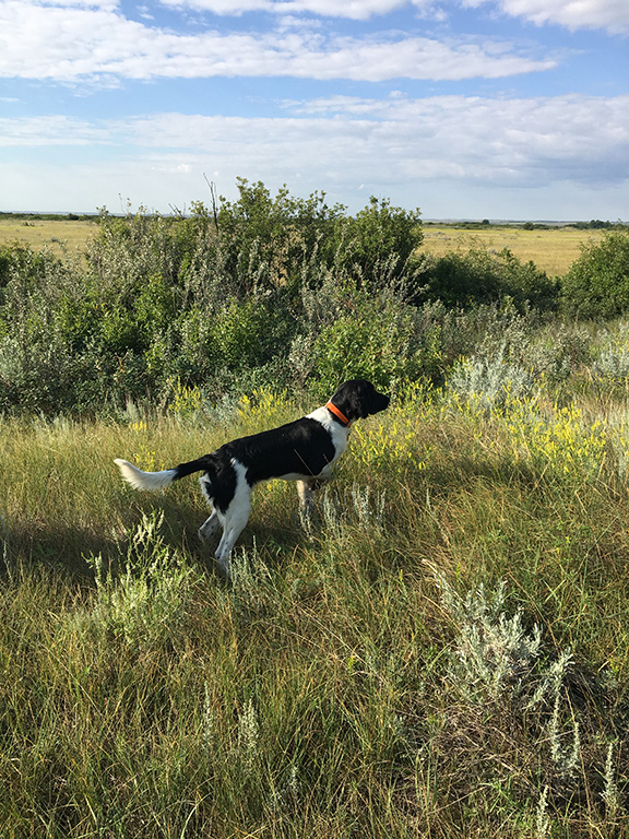 Aiko von Sundorph, was whelped in February 2017 in Germany and lives in Saskatoon with Les & Patty Piecowye. He’s currently the only dog in the household and happily hunts for virtually the entire household of hunters. Aiko stands out for being quiet and a perfect companion in the house and vehicle. He does not bark.