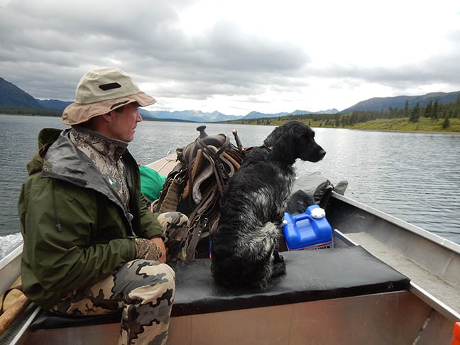 The horse trail to the satellite camp lead right along the creek where the bear reluctantly disappeared to. Once the wrangler arrived with packhorses and the boat with remaining supplies, the group reconsidered. Instead of crowding the bear any further, they decided to postpone the ptarmigan hunt. Back at the lodge, a couple of Scotch calmed the client’s nerves. That evening the client heaped lavish praise on Abby, he truly believed she might have saved his life. |